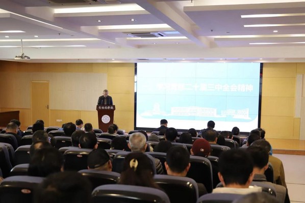 为深入学习宣传党的二十届三中全会精神,按照校党委统一部署,11月27日,开云kaiyun官方网站在院楼1号楼511报告厅举行学习宣传党的二十届三中全会精神校内宣讲团报告会,邀请校内宣讲团成员、研究生院院长陈兵作专题辅导报告,学院全体教职工参加了学习,报告会由学院党委书记李文雷主持。