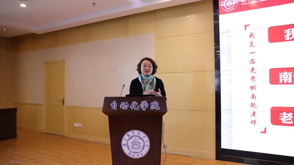 王晖以《我是一名光荣的南航老师》为题,通过宣传片《心路鹏程》带领老师们重温了南航70多年的建校历史与文化脉络,接着,她从网络热点舆情事件说起,围绕高校师德师风建设的应然、实然和必然,从宏观层面阐释了党和国家对师德师风建设的高度重视和政治要求,从微观层面对我校教师队伍思想政治状况进行分析,并带领老师们学习了《新时代高校教师职业行为十项准则》《研究生导师指导行为准则》等规定。希望老师们不断提高思想认识、强化师德涵养,大力弘扬和践行教育家精神,带着“热爱”与“敬畏”之心,投身于教书育人的伟大事业中,共同为南航的辉煌未来和我国高等教育事业的发展贡献力量。
