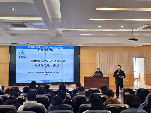 2024年11月26日,我校电气工程及其自动化专业“航空航天供电系统”产教融合课程在开云kaiyun官方网站1号楼511报告厅如期开展。本次课程特邀上海空间电源研究所彭方涛主管设计师为180余名本科生授课,课程组教师张卓然教授、于立副教授以及部分研究生共同参与听课,课程由于立主持。
