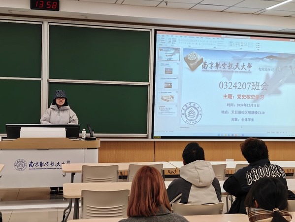 李静老师首先带领同学们进行了党史校史学习,用光辉的历史为同学们鼓舞斗志。她强调,南航身为工信部直属高校,南航学子应该以此为豪,传承红色基因,构筑蓝色梦想,牢记初心,不忘使命,树立高度的自信心、归属感和奋斗精神,为今后的努力确立明确的方向。