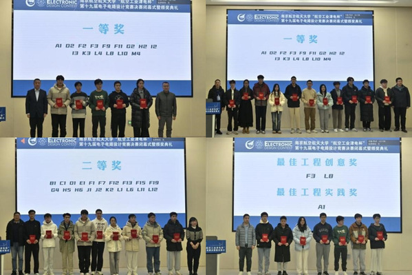 此次比赛共评选出一等奖15项,二等奖20项,最佳工程创意奖2项和最佳工程实践奖1项,现场嘉宾和评委分别为获奖学生颁发证书。在热烈的掌声中,“航空工业津电杯”第十九届电子电路设计竞赛圆满落下帷幕。