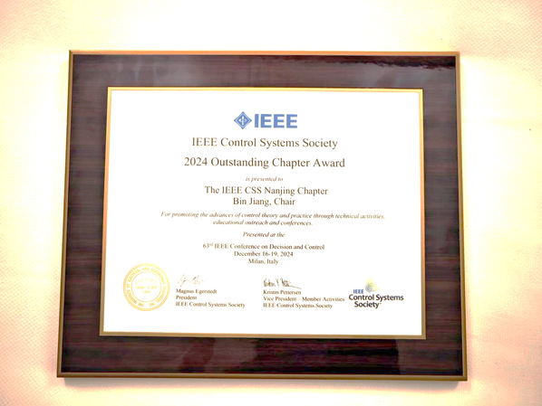 2024年12月16日至19日,第63届IEEE国际控制与决策会议(CDC)在意大利米兰成功举办。会议期间,开云kaiyun官方网站姜斌教授担任主席的IEEE CSS南京分会(Nanjing Chapter)荣获突出学会奖(IEEE Control System Society 2024 Outstanding Chapter Award),这是IEEE国际学术组织对分会以及姜斌教授本人在控制理论与实践领域卓越贡献的高度肯定。