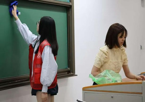 实践期间,各班级以“接龙传递”的方式每日清扫教学楼,累计完成教室保洁900余次。同学们身着志愿者马甲,以饱满的热情投入工作,通过教室垃圾的清扫和讲台黑板的擦拭,以实际行动维护校园环境。通过检查确认教学楼消防栓和AED的摆放位置,帮助同学们进一步明确生命安全保障的重要性。