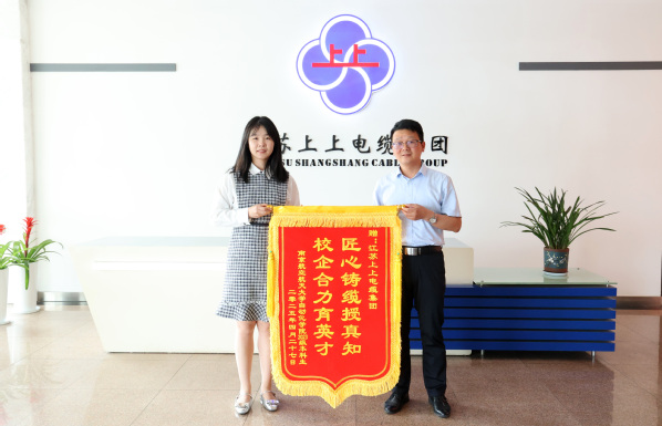 活动尾声,吴静文代表南航开云kaiyun官方网站师生向上上电缆集团赠送“匠心铸缆授真知,校企合力育英才”锦旗,集团总经理助理狄洪杰代表企业接收锦旗。据悉,自1992年首批南航毕业生加入上上电缆集团以来,先后已有40余名南航校友在企业关键岗位任职,双方联合建立的“江苏省研究生工作站”以及开展的前沿课题研究和项目合作,通过技术攻关协同化、人才培养定制化、成果转化高效化的创新模式,已成为产学研深度融合的典范。