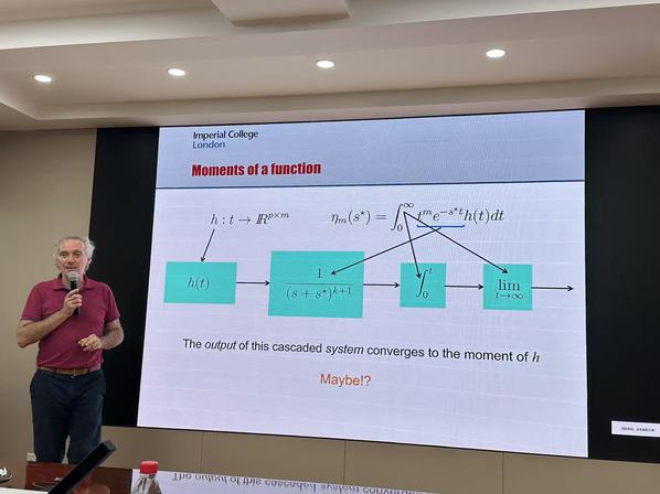 Alessandro Astolfi 教授的报告围绕控制系统理论中的 “矩” 概念展开。报告首先梳理了 “系统矩” 概念的历史起源与发展脉络,深入阐释了 “系统矩” 与模型降阶问题的内在关联,提出了一类基于 “矩匹配” 的模型降阶方法,并剖析了 “矩匹配” 在线性与非线性系统之间存在的本质差异。随后,报告以电路系统为实例,系统阐述了 “矩” 在电力电子、功率变换等工程领域的应用价值,并对相关领域未来的研究方向进行了展望。