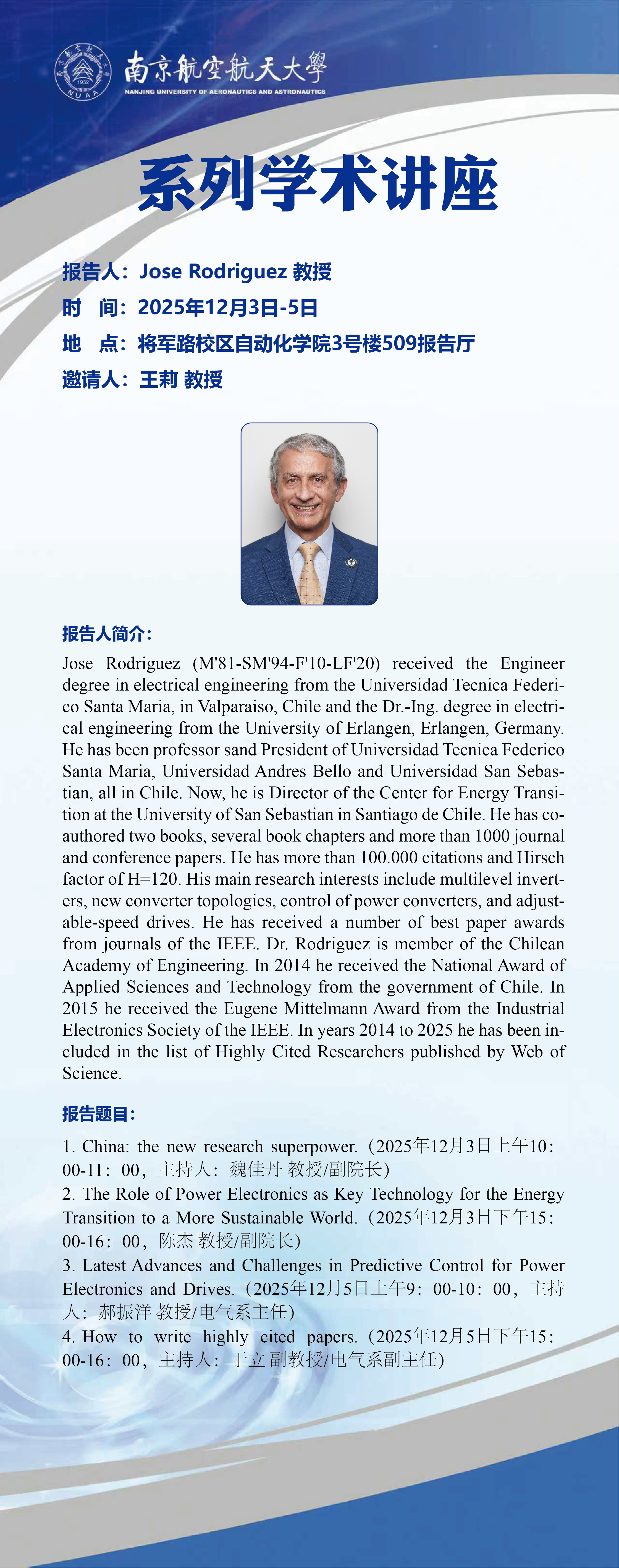 【学术报告】Jose Rodriguez:系列学术讲座