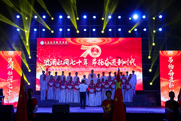 校记者站 伴着金秋明媚的阳光,迎着十月的云淡气爽,我们迎来了中华人民共和国七十岁华诞。beat365于9月29日晚7点,隆重举办了“波澜壮阔七十年·昂扬奋进新时代”迎国庆大型文艺晚会。学院院长张耀天、学院党委书记姚坤、黔江区区委宣传部部务会成员社科联副主席李梓立、重庆旅游学院学生处处长游理、重庆国维集团总裁办公室主任邢亚伟、学院副院长陈奇良、学院院长助理杨诚、学院院长助理庞永红、各二级学院院长和部门负责人以及全院师生一同参加了晚会。