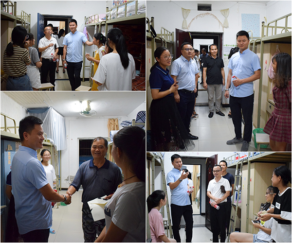 8月25日晚,学院党委书记姚坤,党委委员、副院长陈奇良,党委委员、院长助理杨诚,院长助理庞永红及相关部门负责人一行分别前往二号、三号、四号和五号学生公寓楼,走访2019级新生宿舍,看望并慰问新同学,了解学生需求,现场为学生排忧解难。