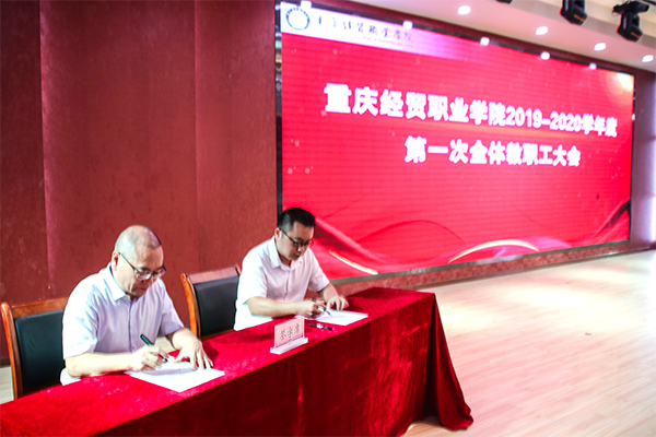 会上,学院各部门、二级学院主要负责人与院长张耀天签订了2019-2020学年安全稳定工作目标责任书和工作目标责任书。