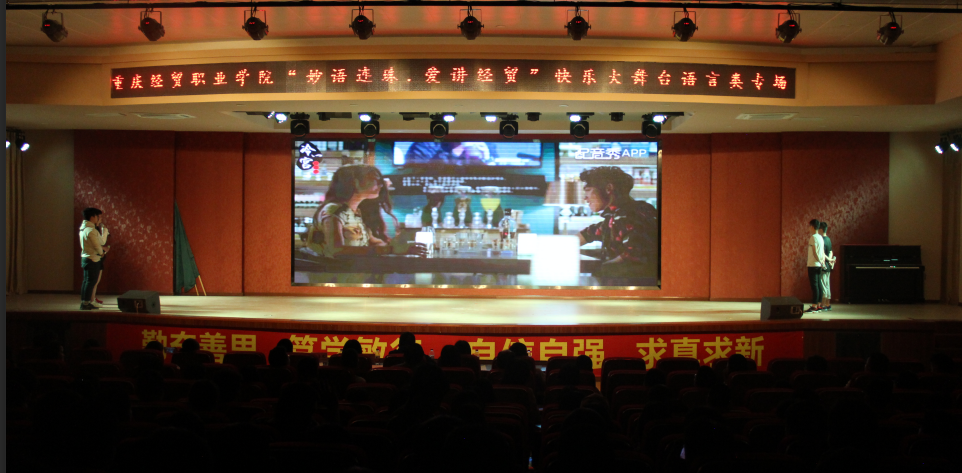 5月29日,以“妙语连珠,爱讲经贸”为主题的语言类专场活动在beat365学术报告厅举行。黔江电视台主持人导演宋昊轩、重庆国维外国语学校教学中心主任靳静、北京广慧金通有限公司驻黔代表蒋悦、学院院长助理杨诚、各部门领导、老师及600余名学生参加活动。