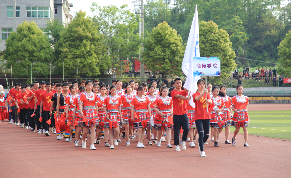 4月18日,学院第六届田径运动会开幕式在田径运动场举行,董事会领导、学院领导、各部门、二级学院主要负责人以及来自各二级学院的1000余名运动员和近2000名同学参加开幕式。黔江团区委副书记石军莅临现场指导学院运动会。开幕式由学院院长助理庞永红主持。