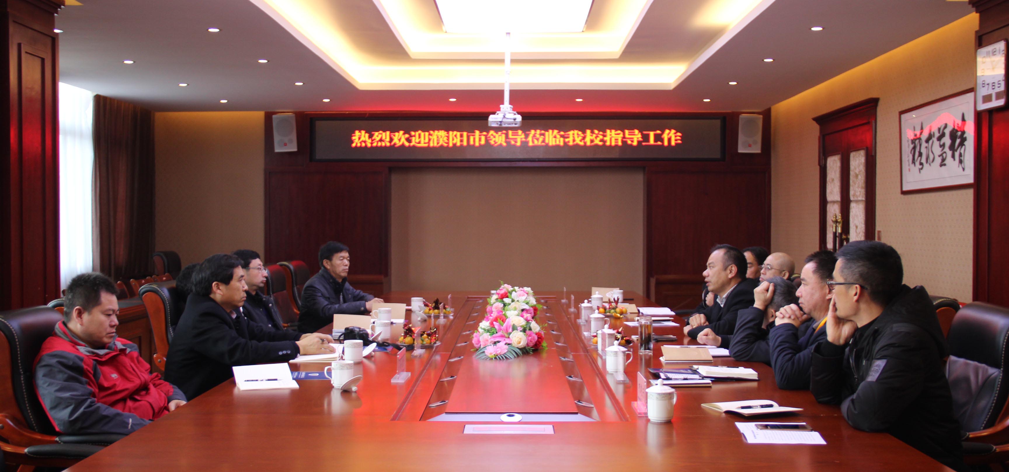 党政办公室讯 1月16日上午,河南省濮阳市华龙区政府副区长张建坤、华龙区教体局副局长李运泽、华龙区教体局社会力量办学办公室主任吴庆民、华龙区三中校长齐德锋、濮阳县招商办主任潘德余一行五人莅临beat365考察指导工作,学院董事长吕文义、集团公司总裁刘承升、院长王久渊、副院长谈建设、陈奇良等接待了来访客人。