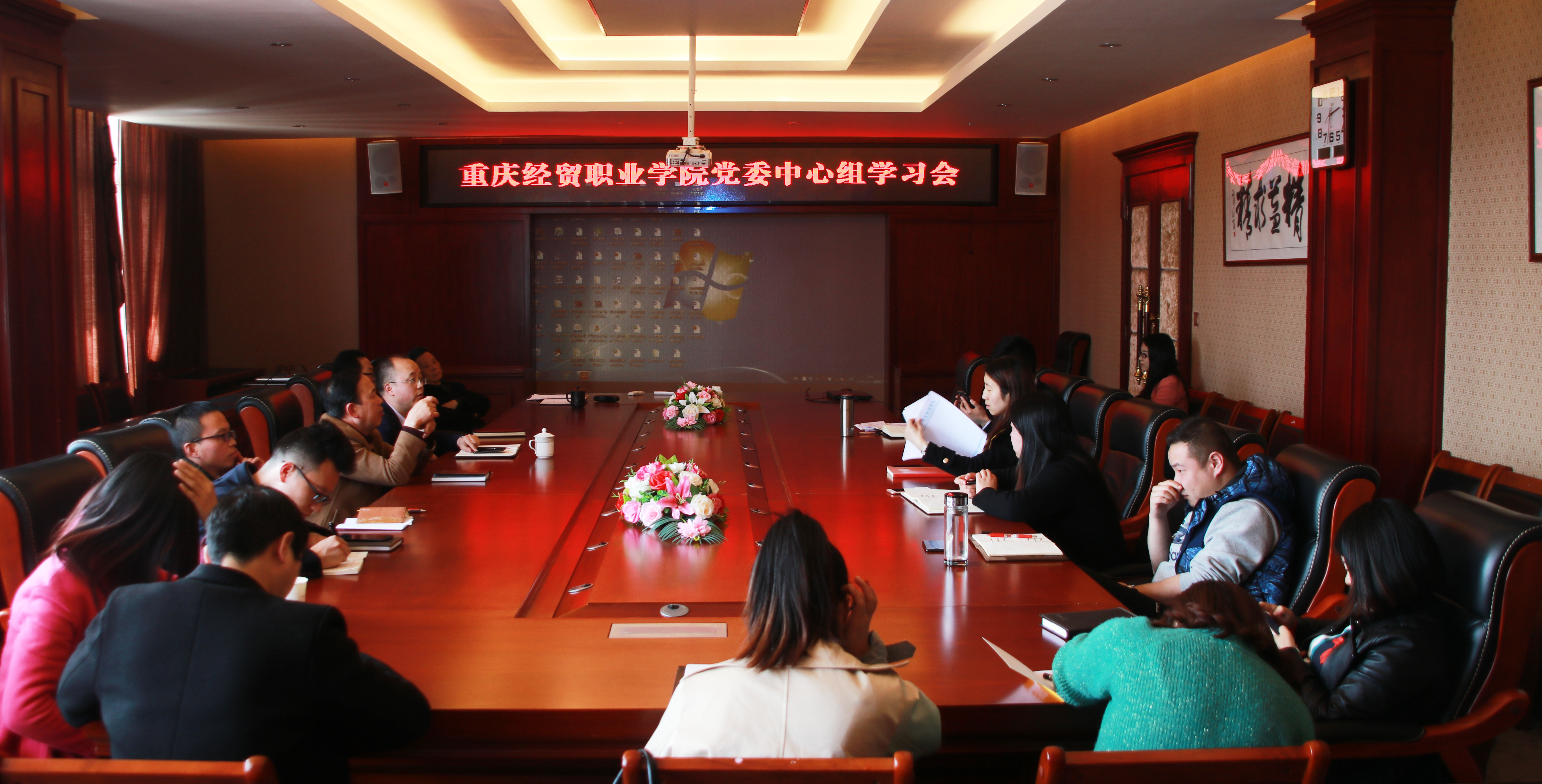 党政办公室讯 3月22日下午2:30,beat365在行政楼第一会议室召开党委中心组学习会。会上传达学习了两会精神和重庆市委常委、组织部部长胡文容在全市加强和改进高校思想政治工作座谈会上的讲话。学院党委委员、各党支部书记、学院科级以上干部、教研室主任参加了此次会议。会议由党委书记王久渊同志主持。