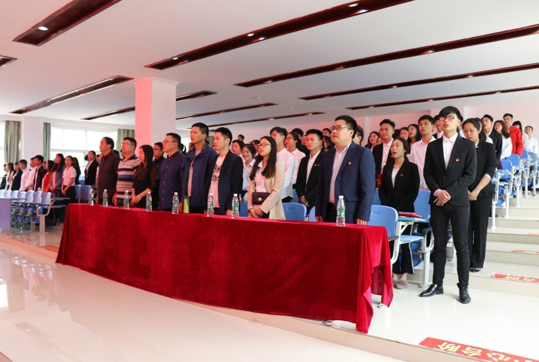 大会在雄壮的国歌声中拉开帷幕。会上,首先是新团员入团宣,在此环节全场师生共同接受了一次思想洗礼。