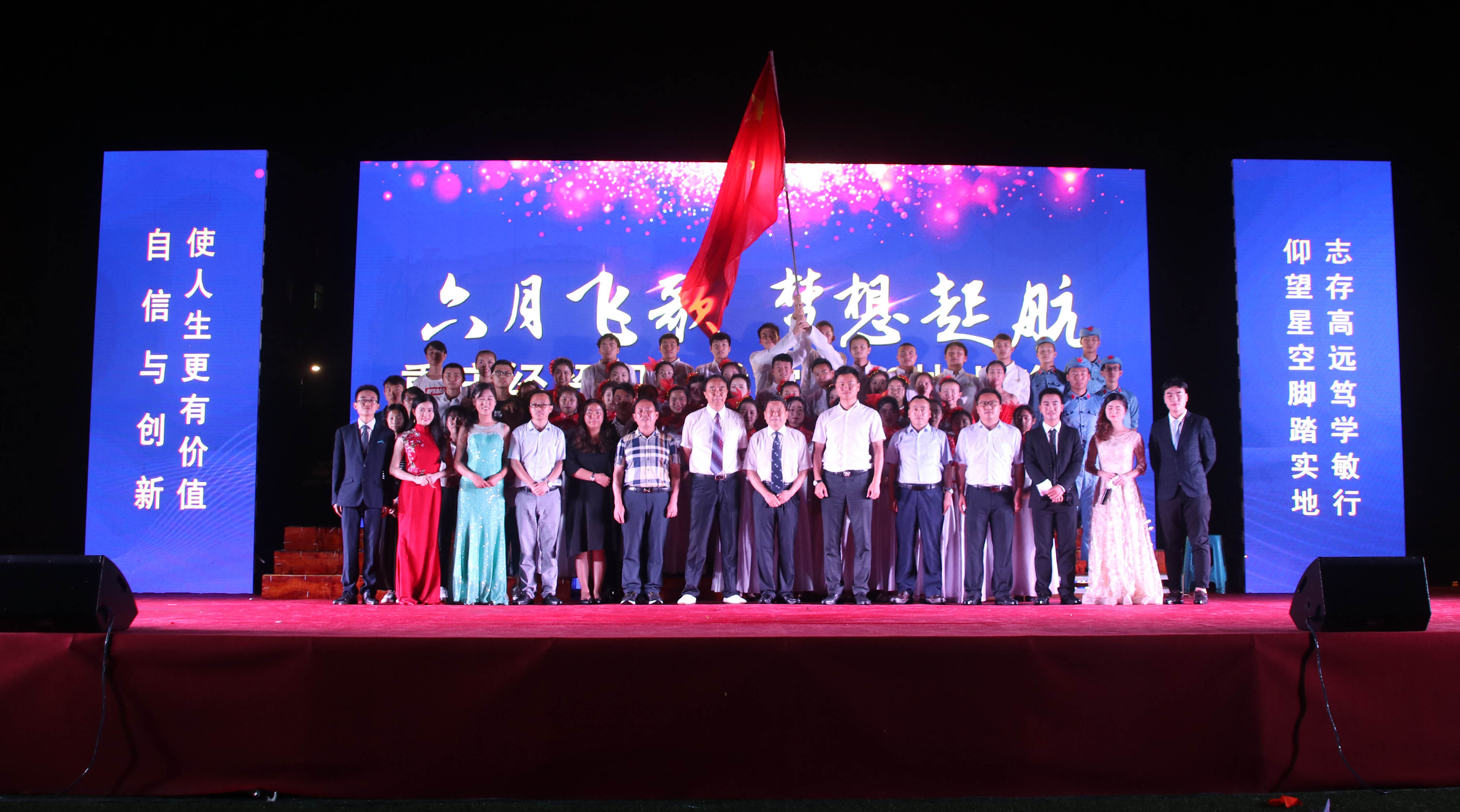 6月11日晚7:30,beat365官方网站2018毕业晚会暨优秀大学生表彰大会在大雨中如期举行。学院院长、书记王久渊,副院长谈建设、陈奇良,全体教职工,部分家长代表及2000余名在校生冒着大雨,与全体毕业生共赏毕业晚会。