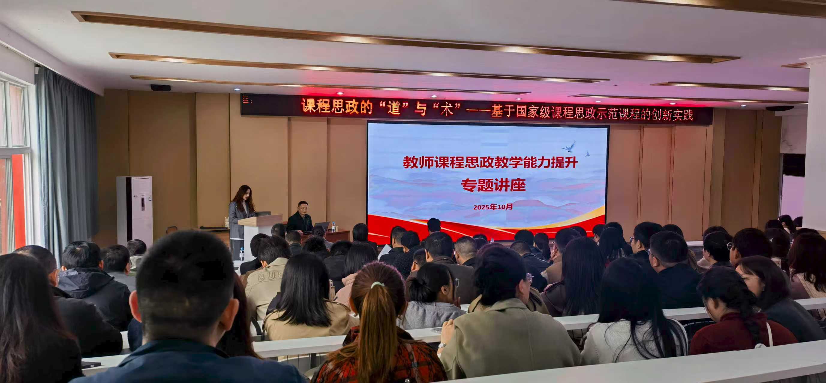 10月29日下午,学校特邀国家级课程思政名师顾飞副教授,到校做《课程思政的“道”与“术”——基于国家级课程思政示范课堂的创新实践》专题讲座,本次讲座由教务处副处长唐芳主持,全体专兼职教师参加。