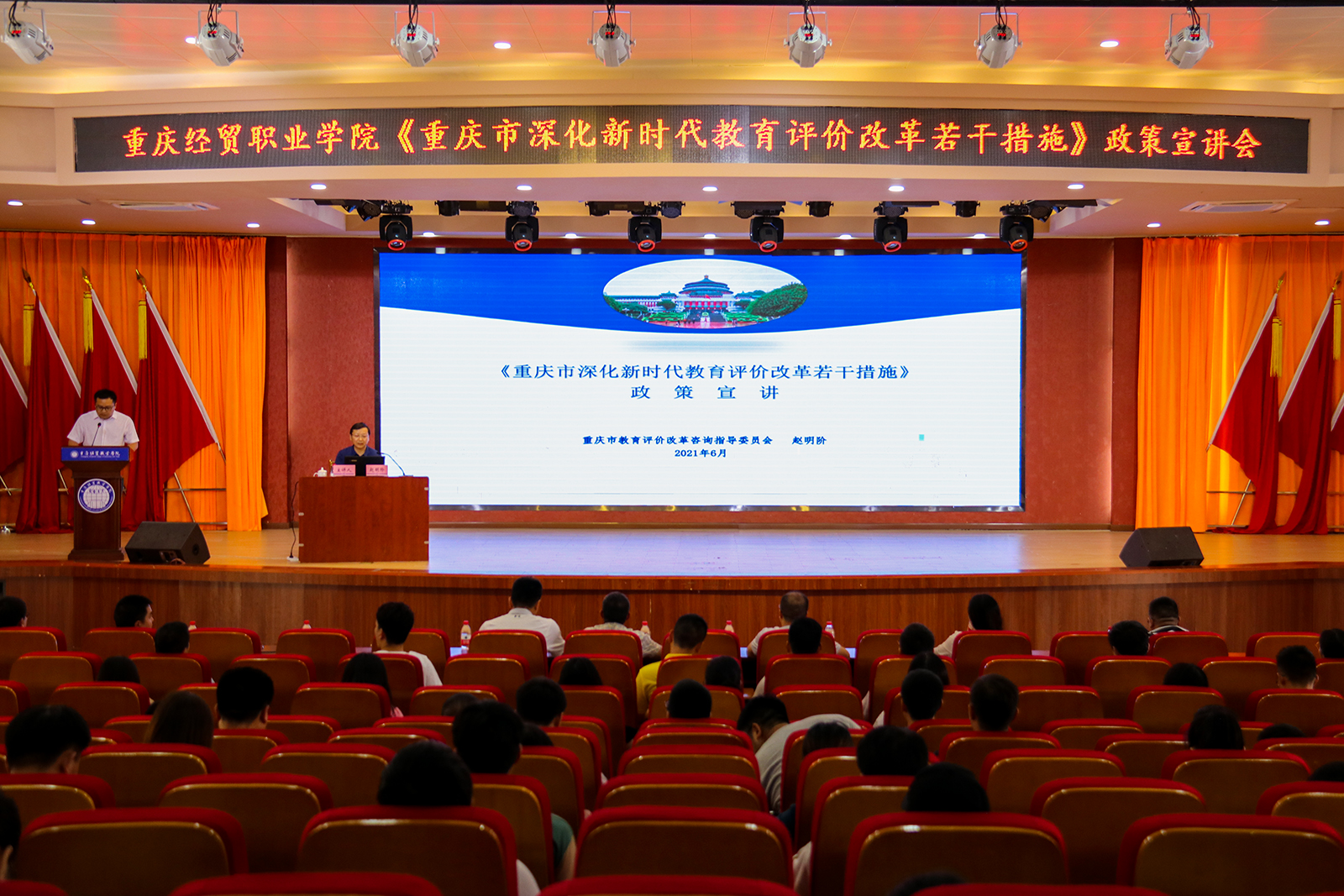 6月25日,beat365组织召开了《重庆市深化新时代教育评价改革若干措施》(以下简称《若干措施》)政策宣讲会。重庆交通大学副校长赵明阶教授应邀来校进行宣讲。